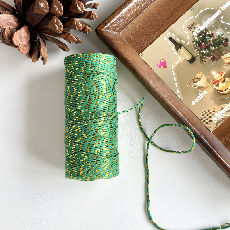 Cuộn dây len sợi bông xanh vàng dài 100m TQ