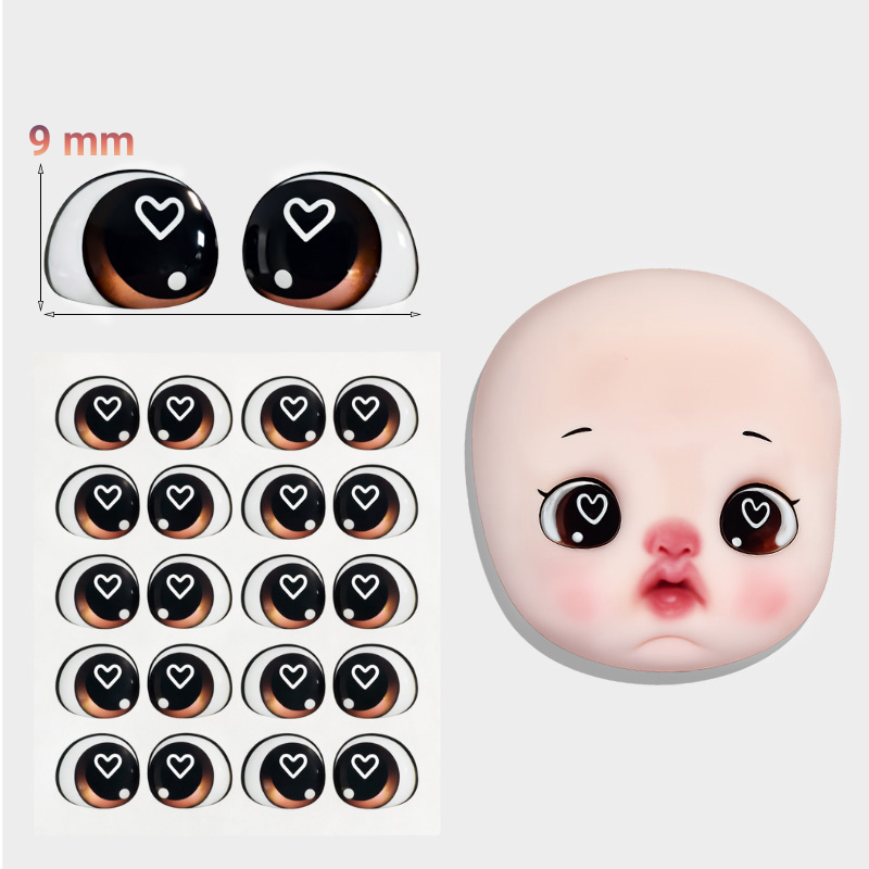 Miếng Dán 20 Cặp Mắt 3D Đen Hình Trái Tim 9mm