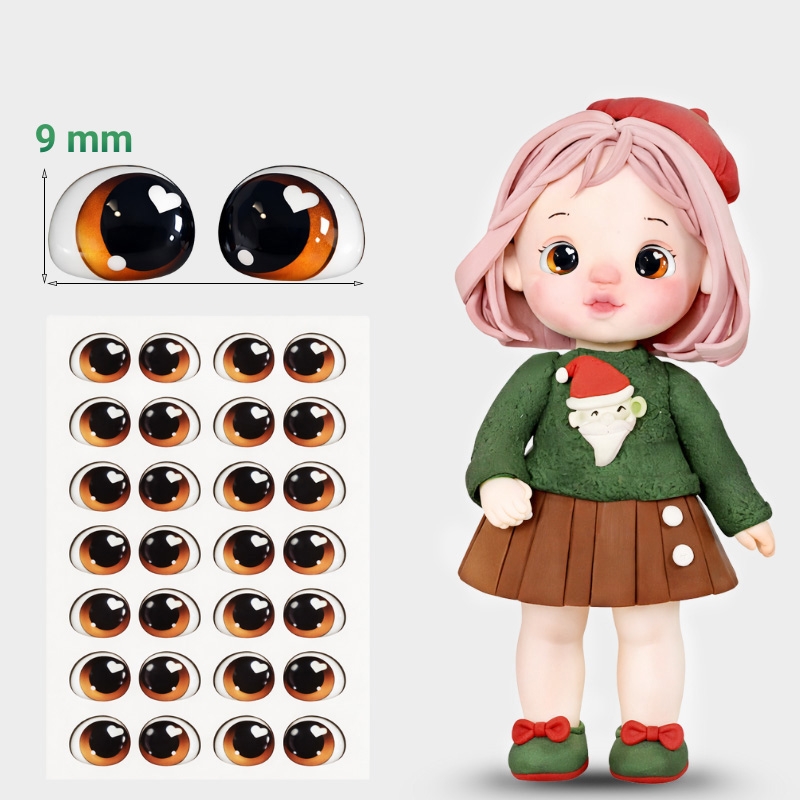 Miếng Dán 20 Cặp Mắt 3D Nâu Hình Trái Tim 9mm