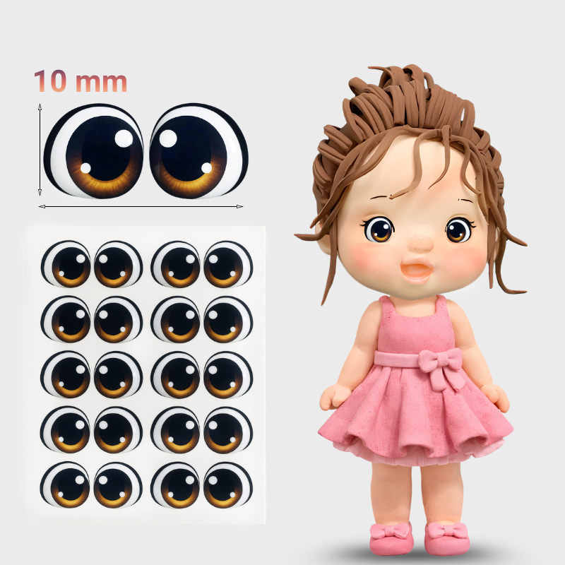 Miếng Dán 20 Cặp Mắt 3D Nâu Tròng Đen Bóng Viền Đen 10mm