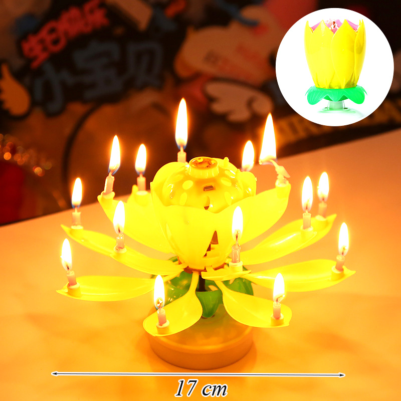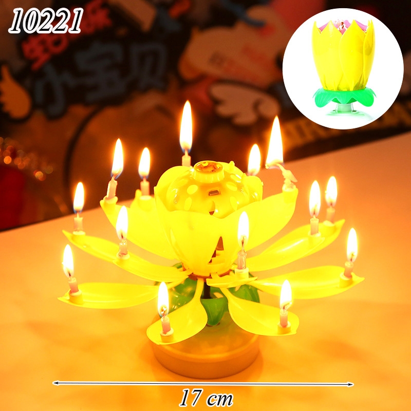 Nến Hoa Sen Phát Nhạc Nở Hoa Màu Vàng 2 Tầng ( 14 Nến )