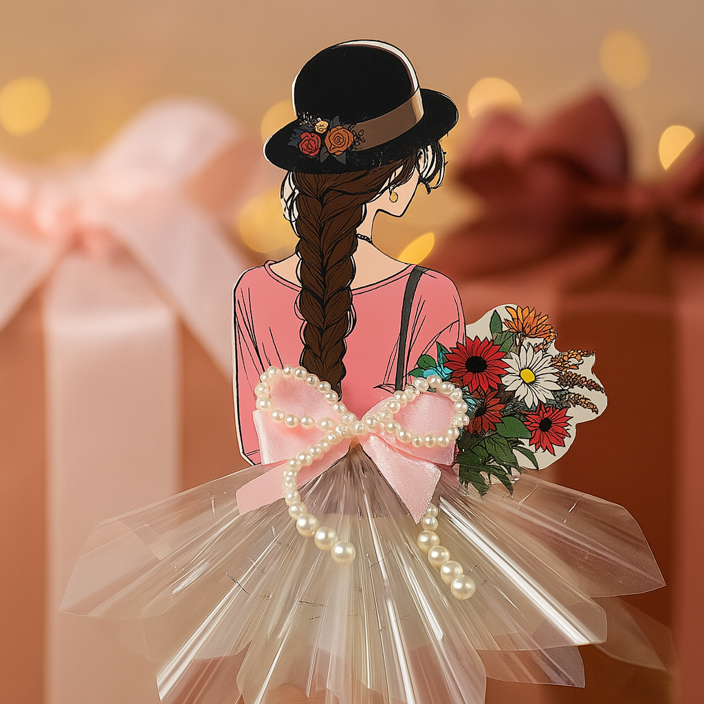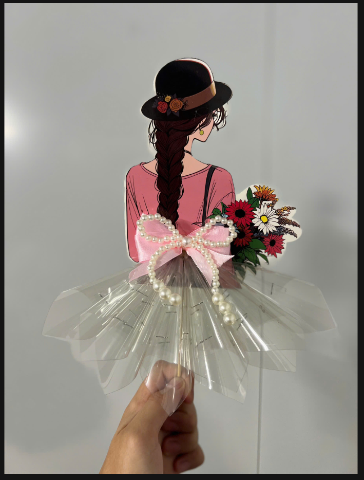 Phôi Đựng Tiền Cô Gái Áo Hồng Ôm Hoa + 10 Meka Tiền HD